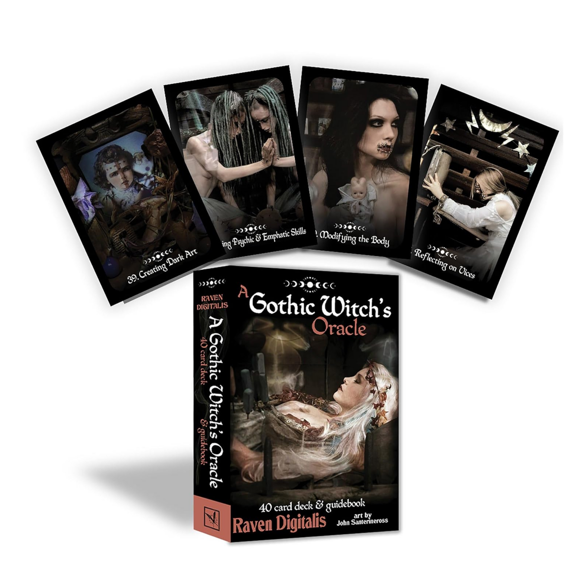 In the spirit of his Empath's Oracle deck, Raven Digitalis has created A Gothic Witch's Oracle in collaboration with world-renowned photographic artist John Santerineross. This deck is the final piece of Raven's 'shadow trilogy', the first two of which were the bestselling Goth Craft and A Witch's Shadow Magick Compendium.