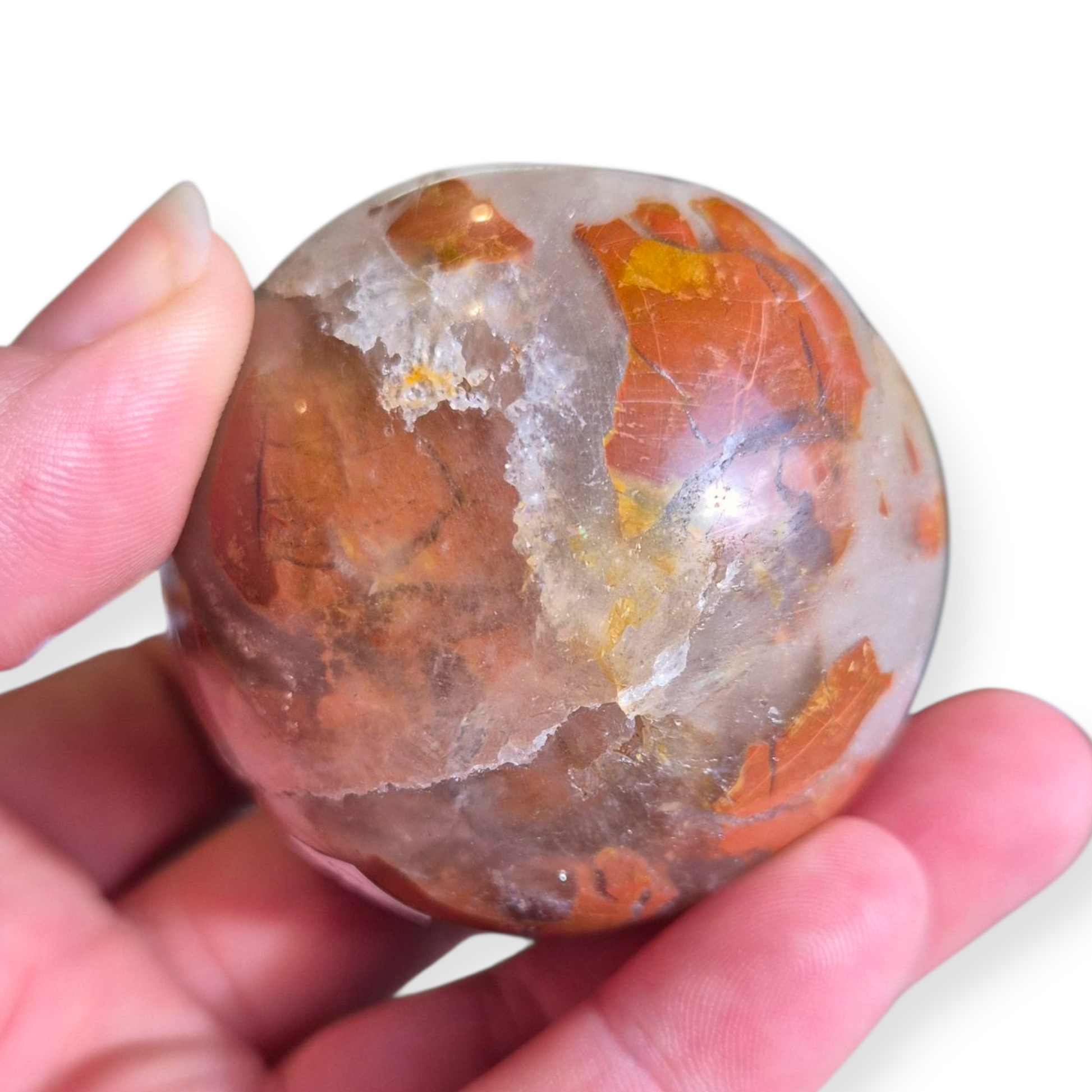 The smooth, tactile surface makes them perfect for holding during meditation, allowing their energy to flow directly into your hands and aura. Because of their shape, spheres emit a steady vibration that’s ideal for bringing balance and calm to your home, workspace, or sacred space.