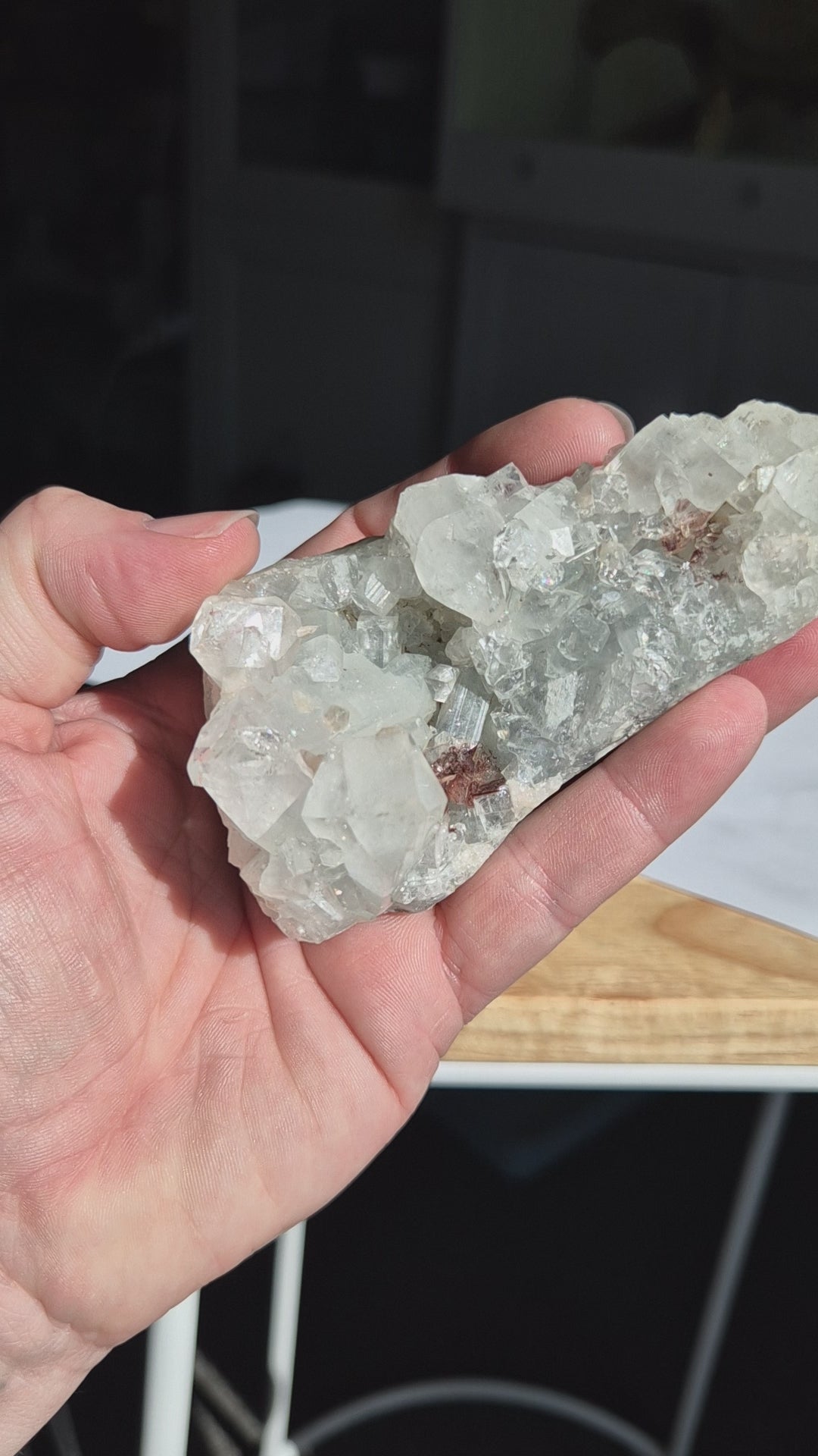 Apophyllite is believed to support respiratory health, helping with asthma, allergies, or sinus congestion due to its association with the air element and breath. It’s often placed near the chest or lungs during energy work to encourage deep, easeful breathing and promote oxygen flow.