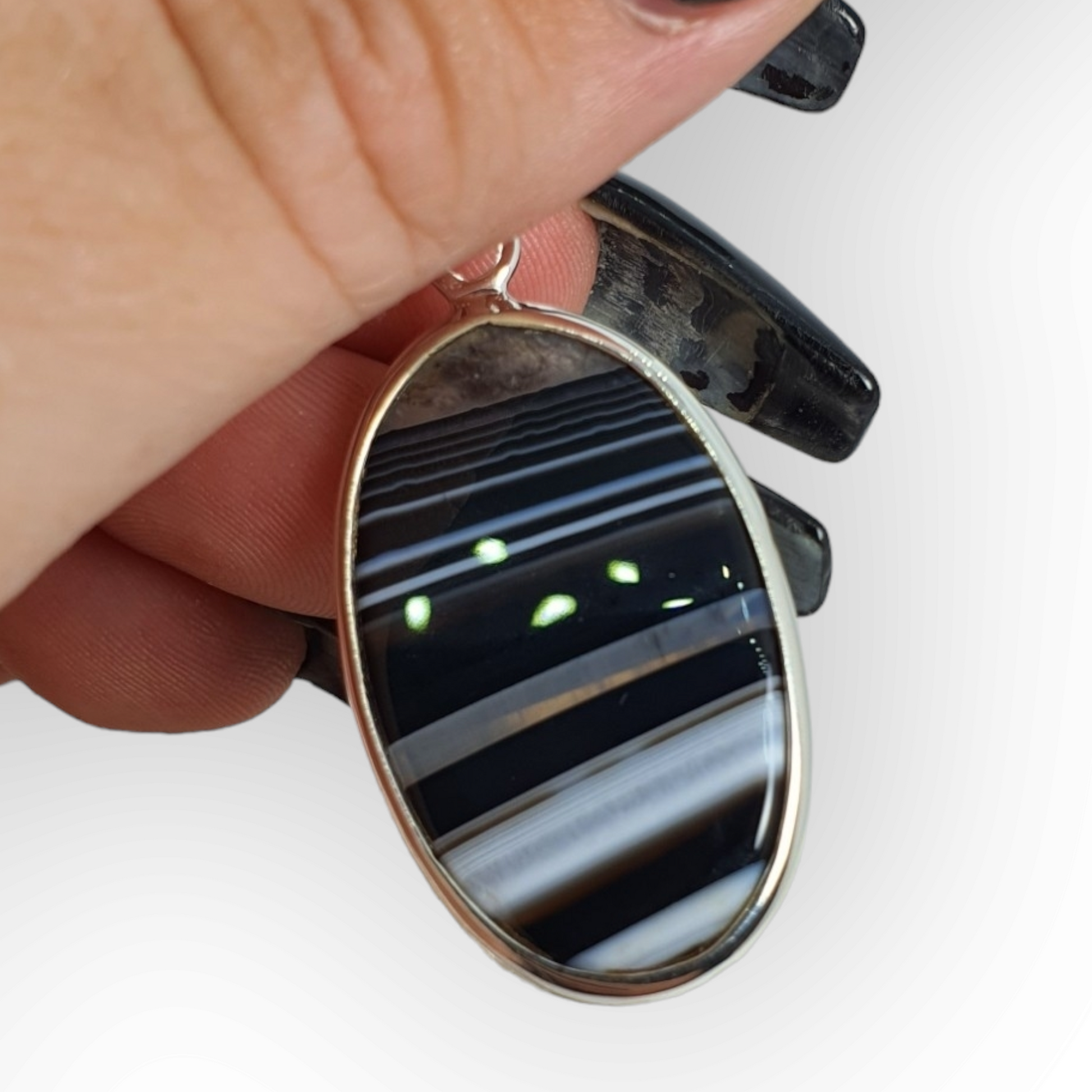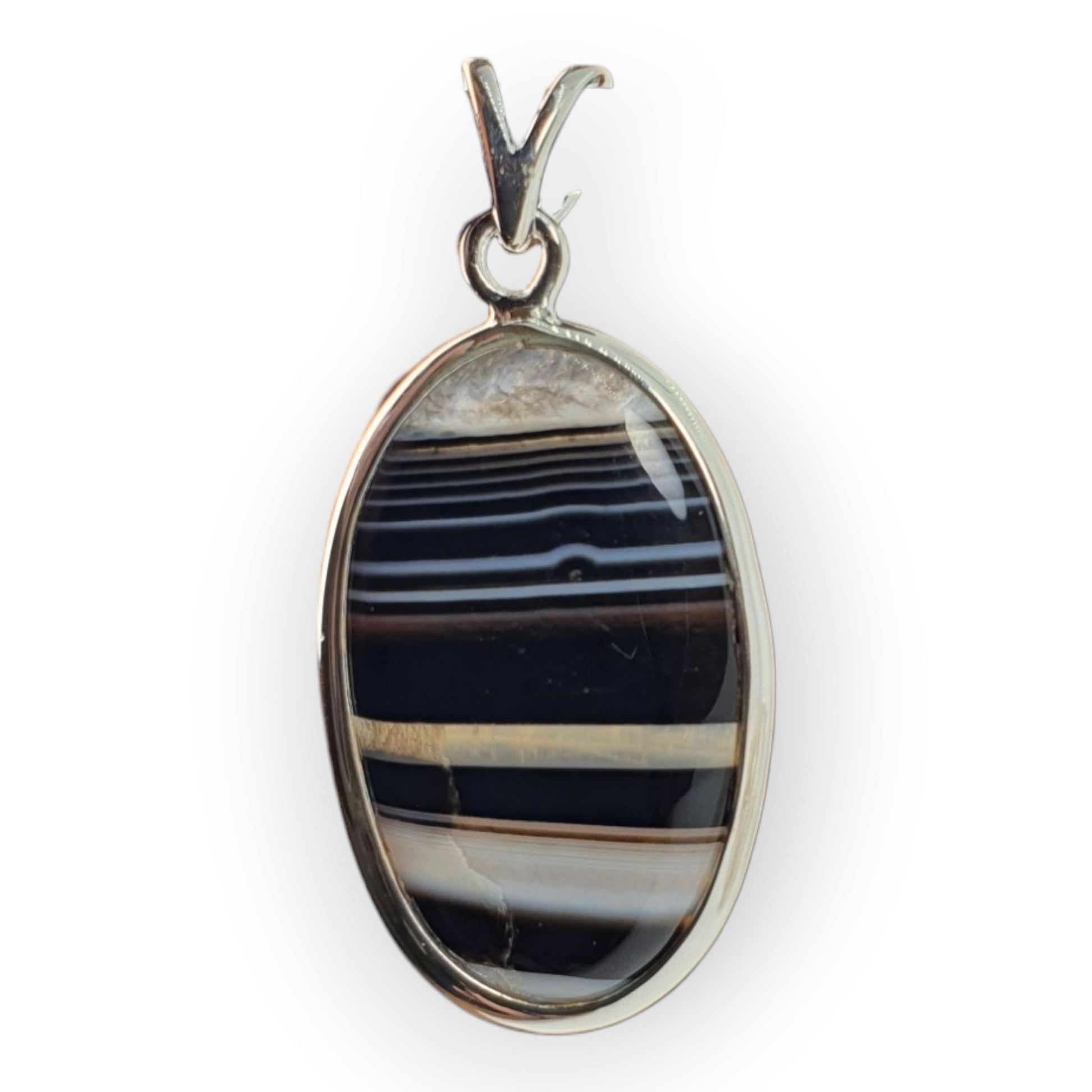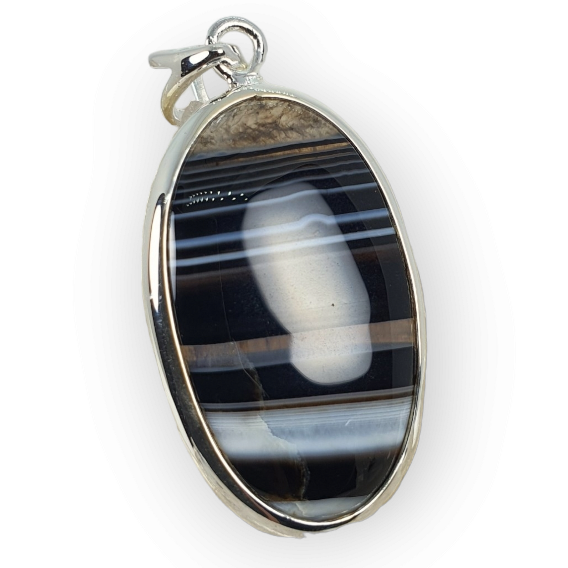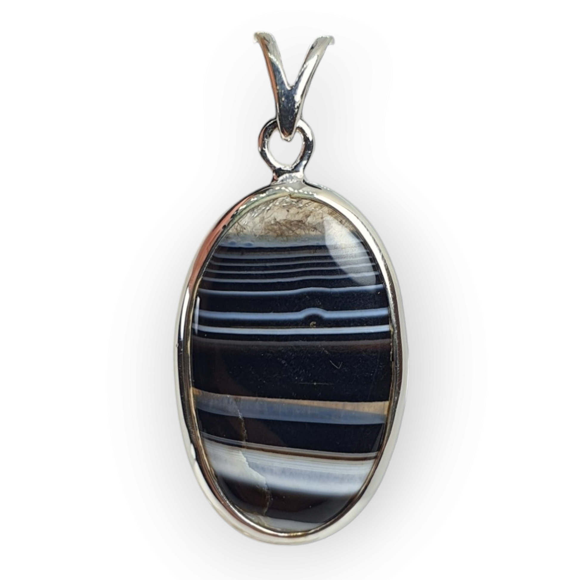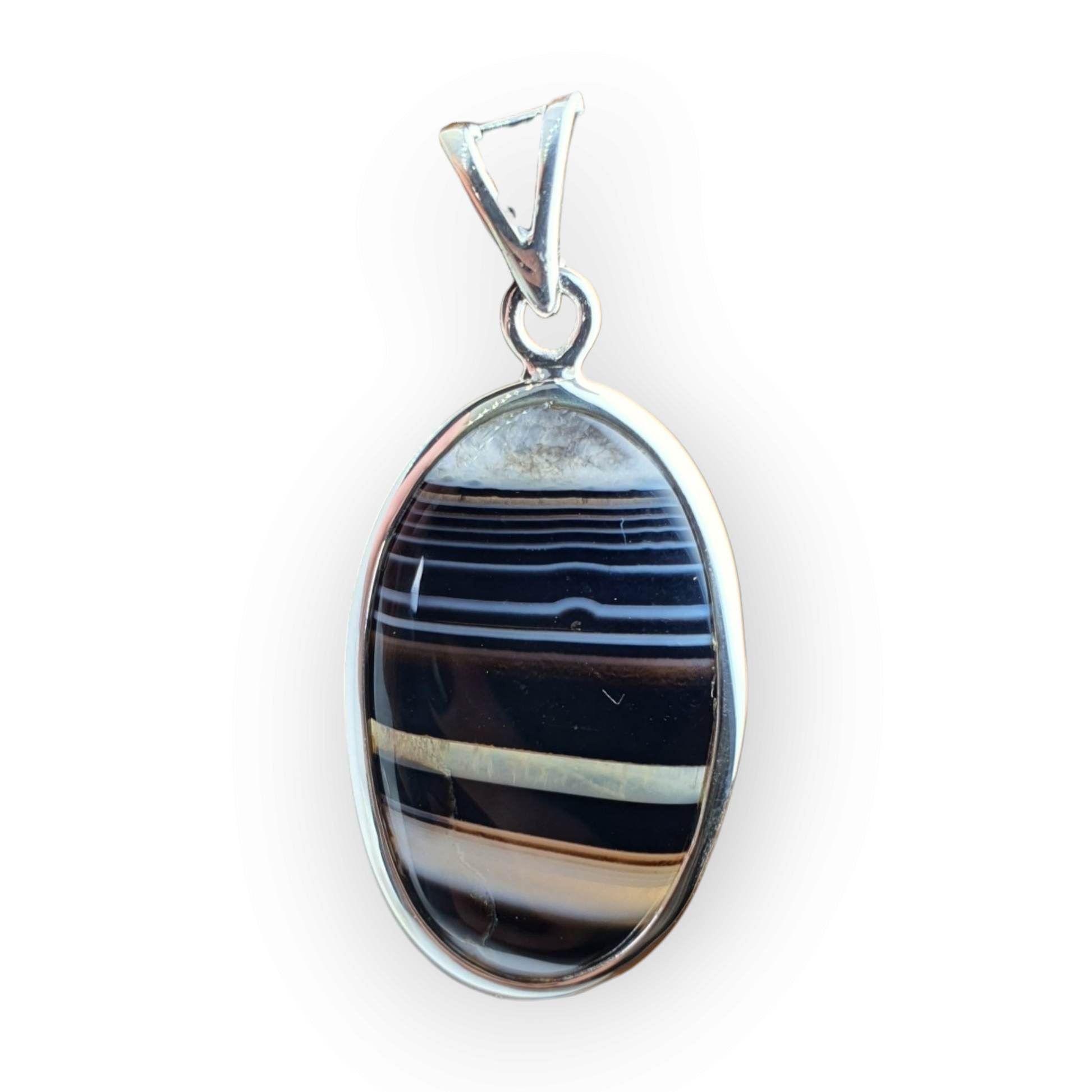 Crystals - Banded Onyx Oval Cabochon Pendant - Sterling Silver
