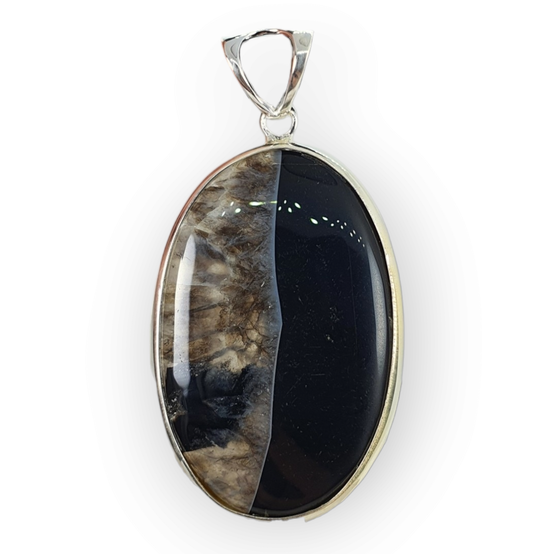 Crystals - Banded Onyx Oval Cabochon Pendant - Sterling Silver
