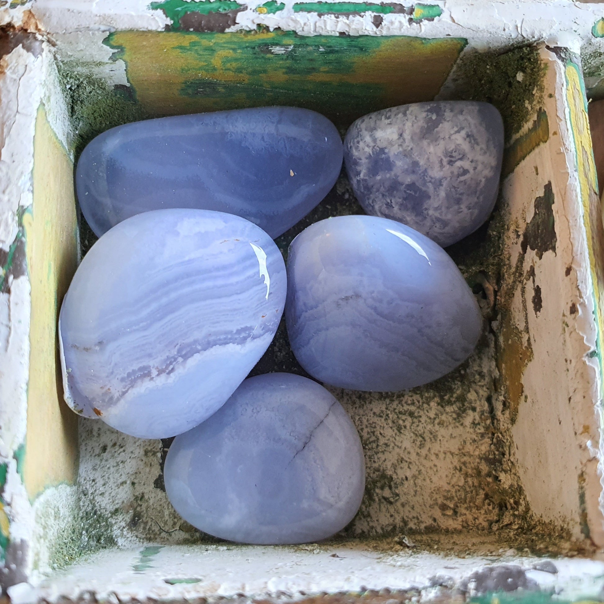 Blue Lace Agate helps to strengthen and accelerate the repair of bones, thyroid deficiencies, throat and lymph infections. It soothes red, sore eyes and any skin problems associated with redness and irritation.