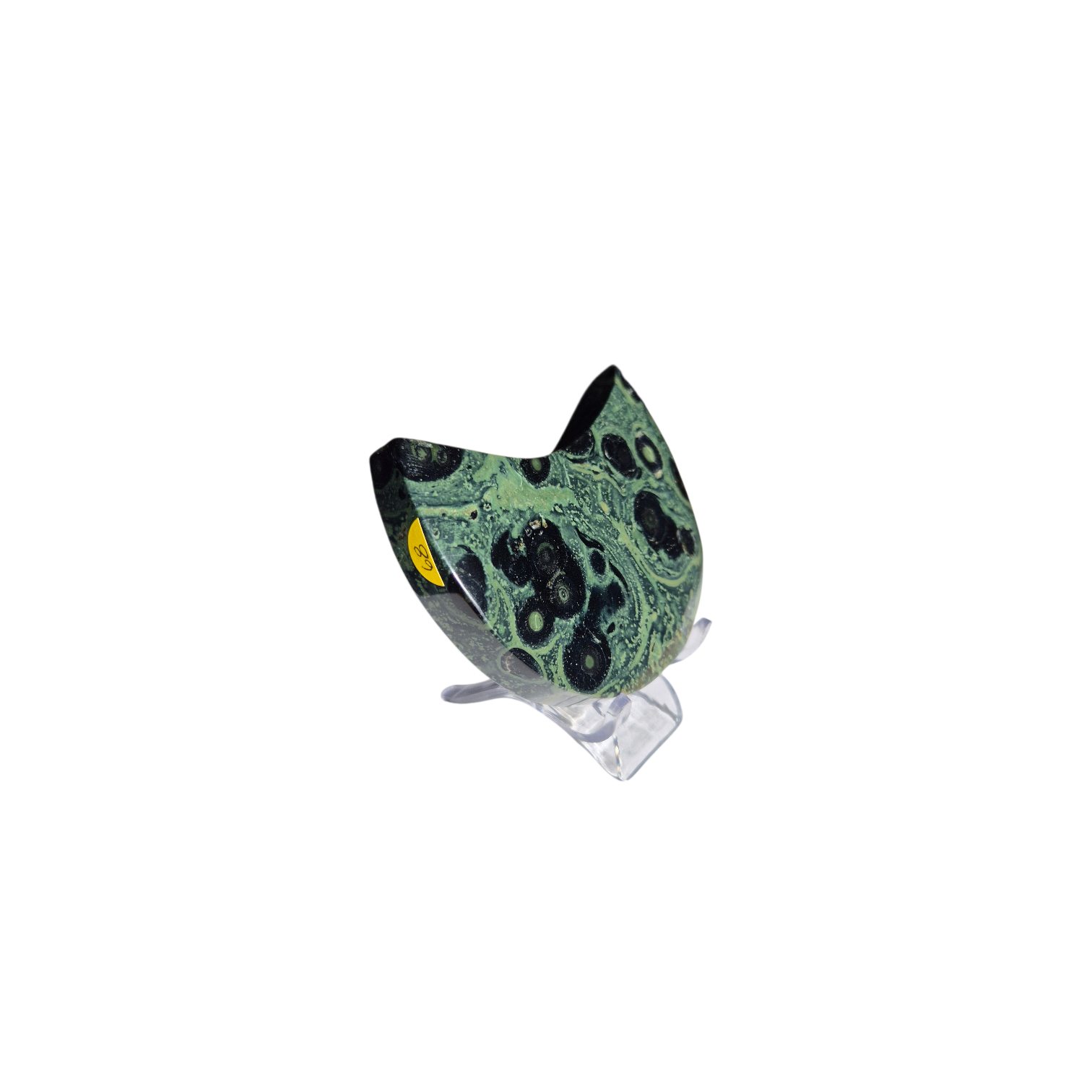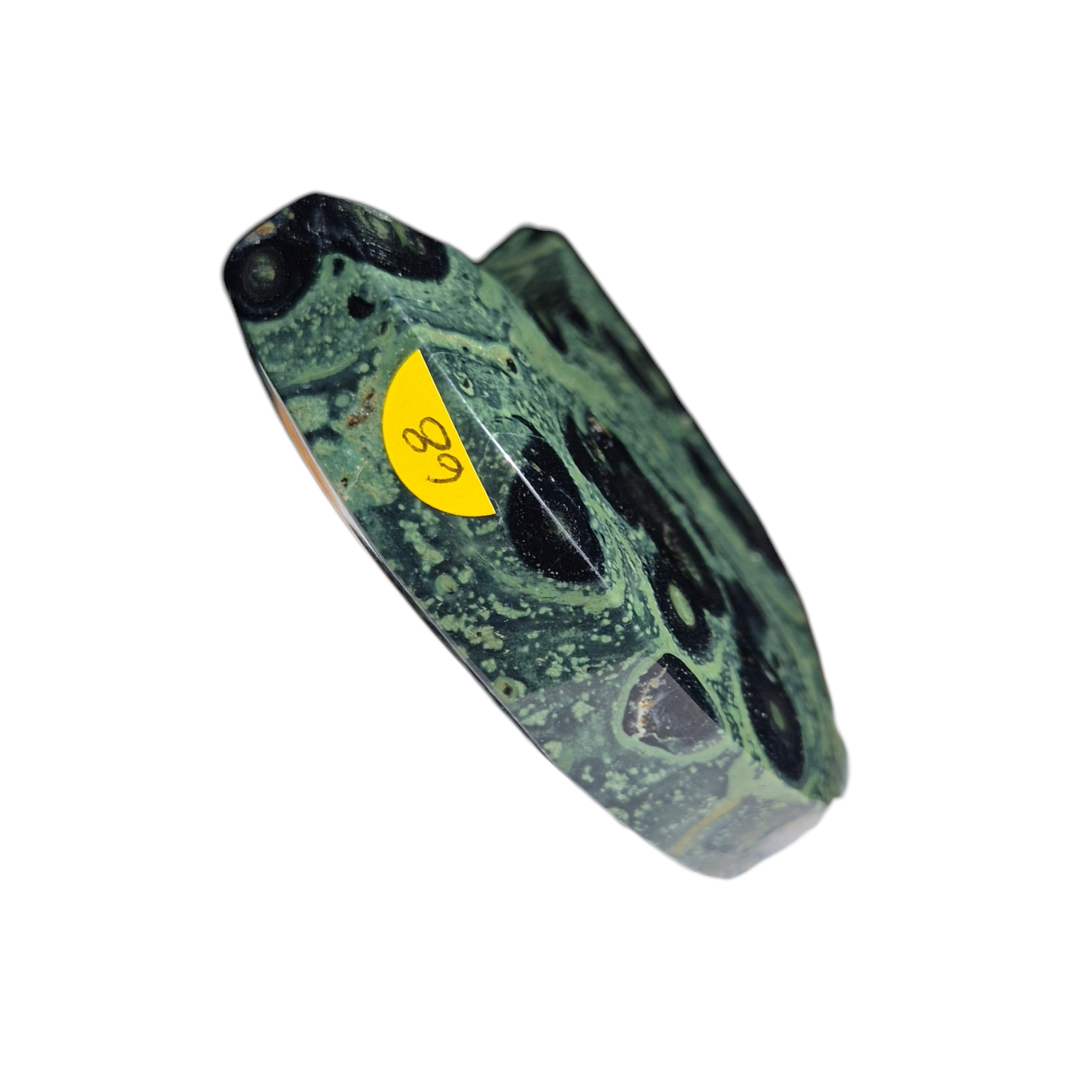 Kambaba Jasper, also known as Crocodile Jasper, is a fascinating and ancient stone characterised by its deep forest green and black swirling patterns, often appearing as circular or orb-like markings. Despite its name, it is not a true jasper but a fossilised sedimentary stone composed primarily of microcrystalline quartz, stromatolites, and fossilised blue-green algae (cyanobacteria)—some of the oldest life forms on Earth, dating back over 3 billion years.