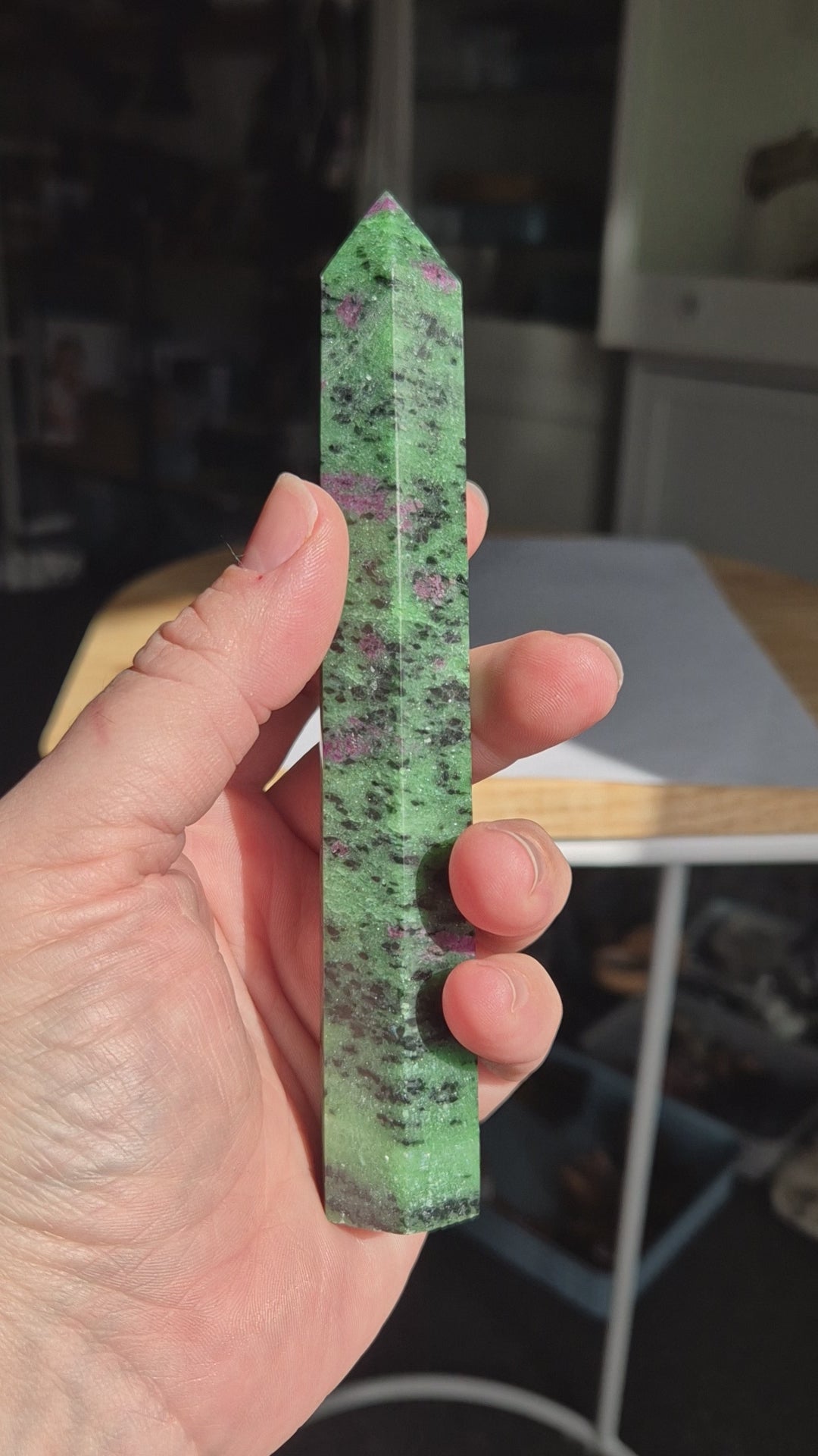 Energetically, Ruby in Zoisite is a fusion of fire and earth—combining grounded personal growth with inspired action. It enhances your ability to manifest goals that are in alignment with your heart and higher purpose, while offering a steady current of support along the way.