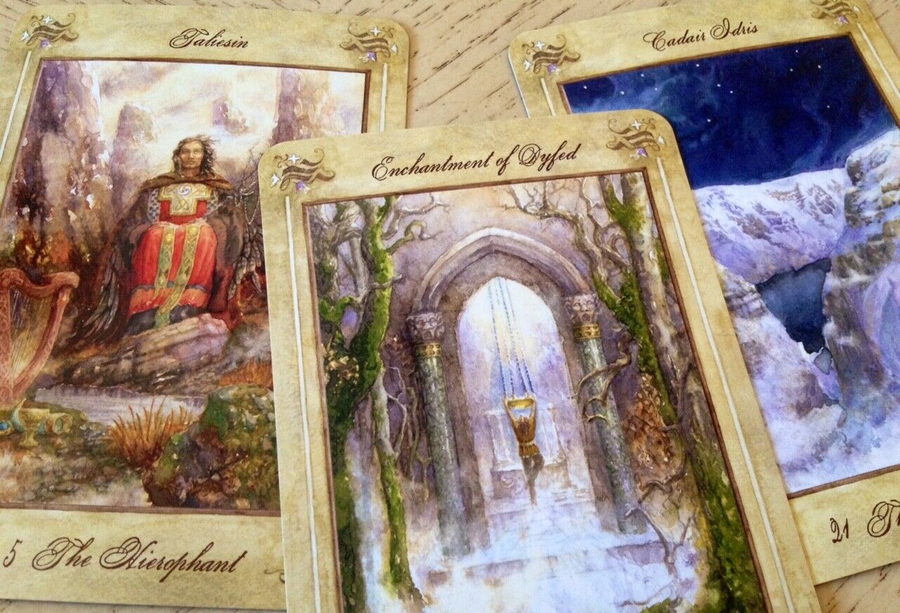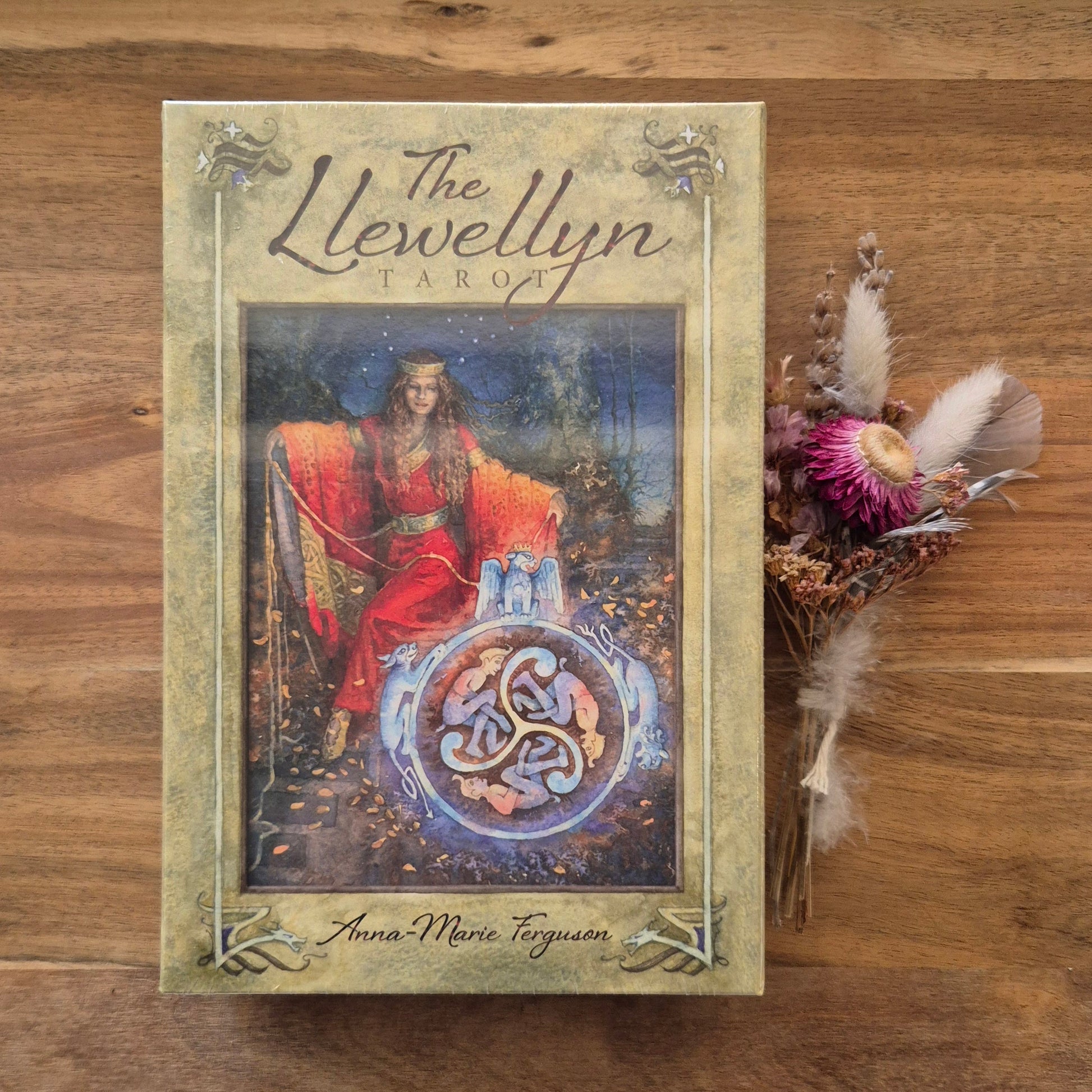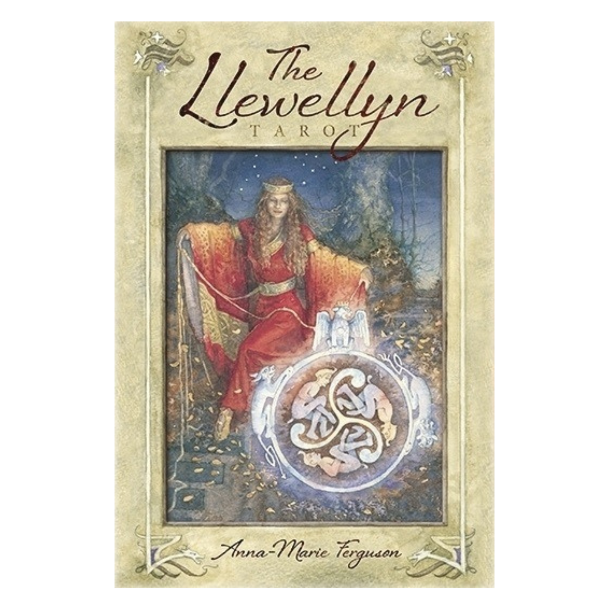 The Llewellyn Tarot is a stunning achievement that has already drawn acclaim for its depth and beauty. Its watercolor imagery invites you into a mystic world of ancient forests, sensuous seascapes and wondrous waterfalls brimming with mystery, meaning and magic. This lavishly illustrated deck is based on the traditional Rider-Waite-Smith deck, making readings easy. It also reveals a compelling Celtic story featuring Rhiannon as The Empress, Bran the Blessed as The Emperor, The Wild Herdsman as The Devil, Gwydion as The Magician, Llew Llaw Gyffes as the Bringer of Light and other figures from Welsh mythology.